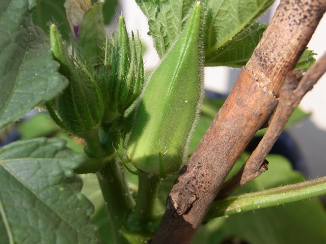 オクラの葉や茎についている透明な水滴なような小さい粒。
