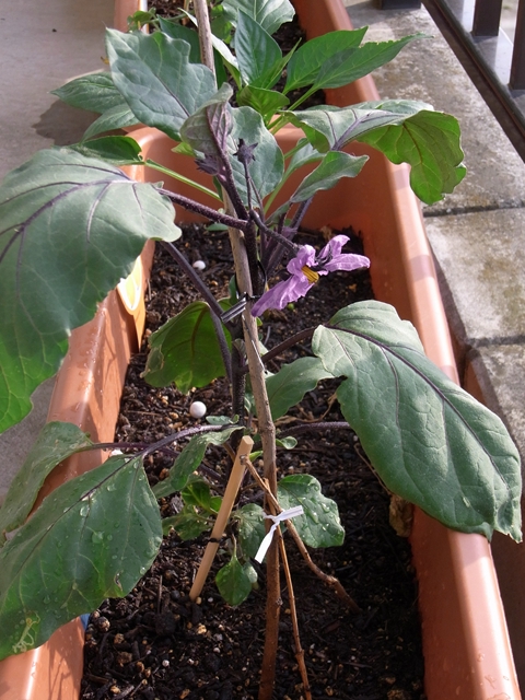 ナスの花は5日たった今日もまだ咲いています。